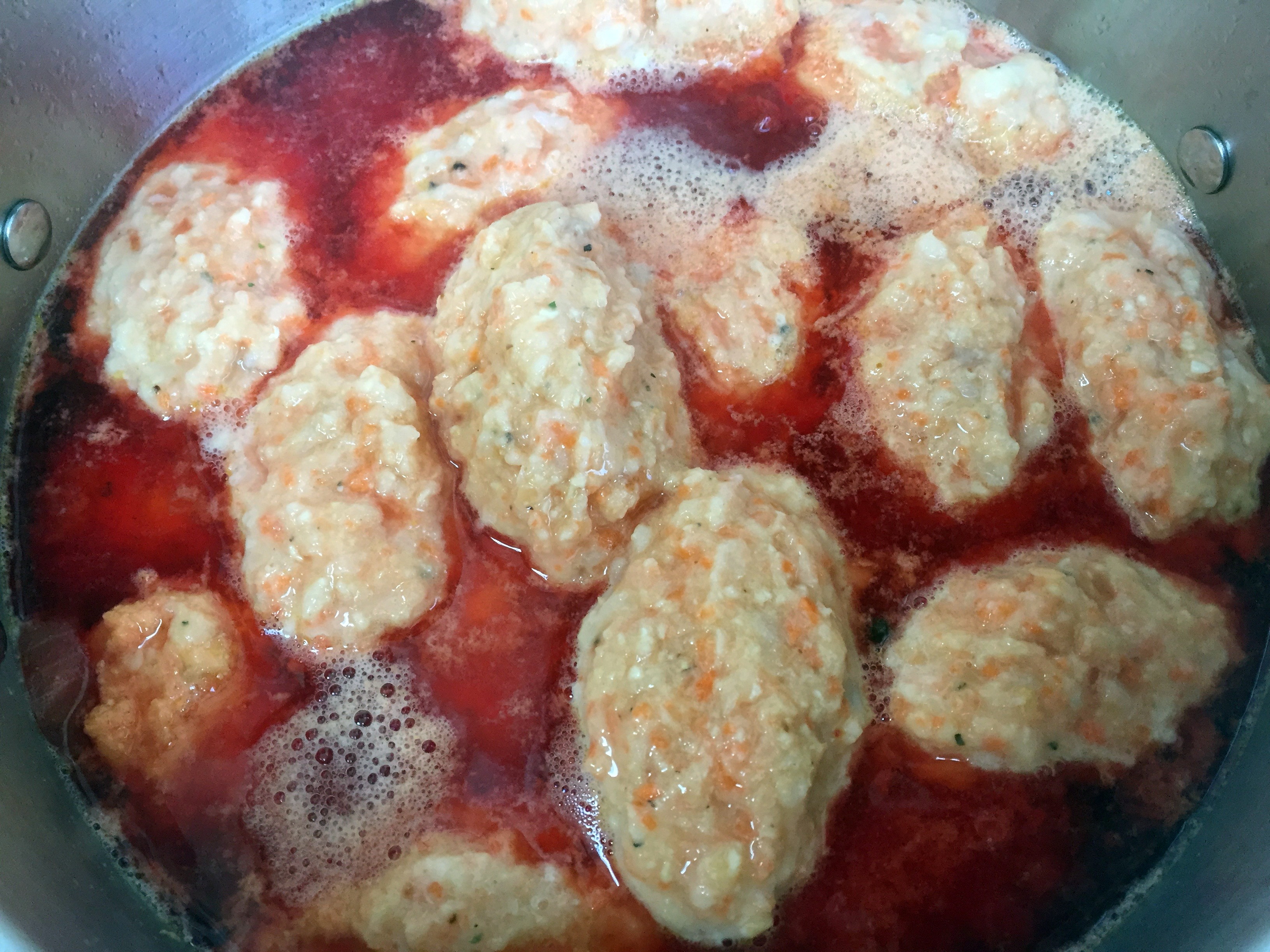 - Form the mixture into traditional oval shape patties, put into simmering broth, cover and let it cook on low heat for 30 minutes.